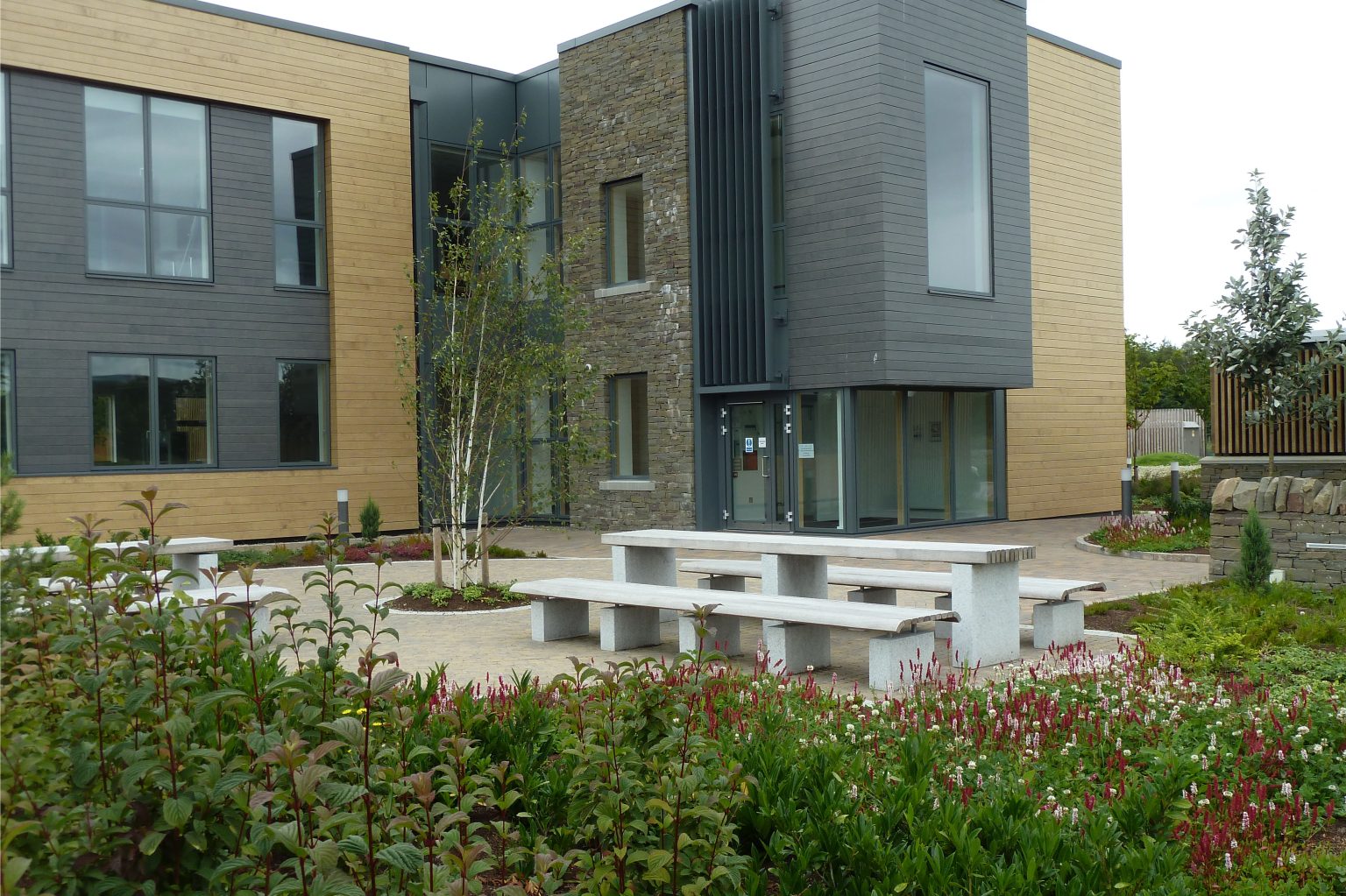 The development of this two-building plot began with Aurora House in 2013. Intended as a high-quality demonstration project to lead the way for future plot developments on the campus, HLA worked closely with Threesixty Architecture to develop the site layout and design the hard and soft landscape. The detail design required careful interpretation of the established design codes for the Campus and featured a distinctive external meeting space as a focal point next to the main entrance.