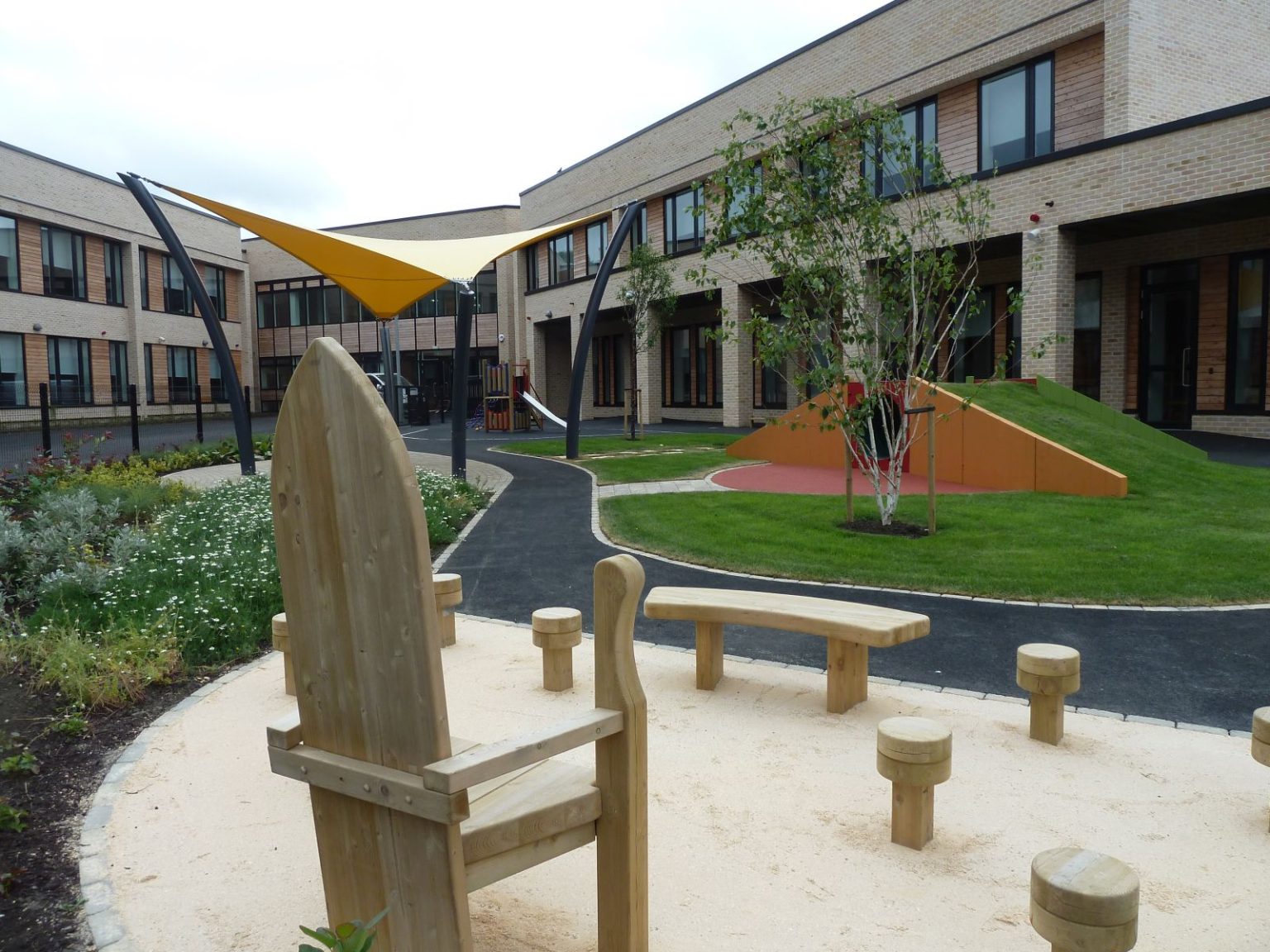 Part of Fife Council’s Building Fife’s Future Programme. This project included the re-provision and improvement of existing sports pitches and children’s play facilities in association with the new school. HLA’s involvement was instrumental in the resolution of complex site planning issues, primarily concerning disabled vehicular access and barrier-free pedestrian circulation. Careful design resulted in significant capital savings to the contract, allowing expenditure to be focussed on key areas and play spaces. Our proactive approach saw us assume ownership of the external works, co-ordinating the contribution of other members of the Design Team.