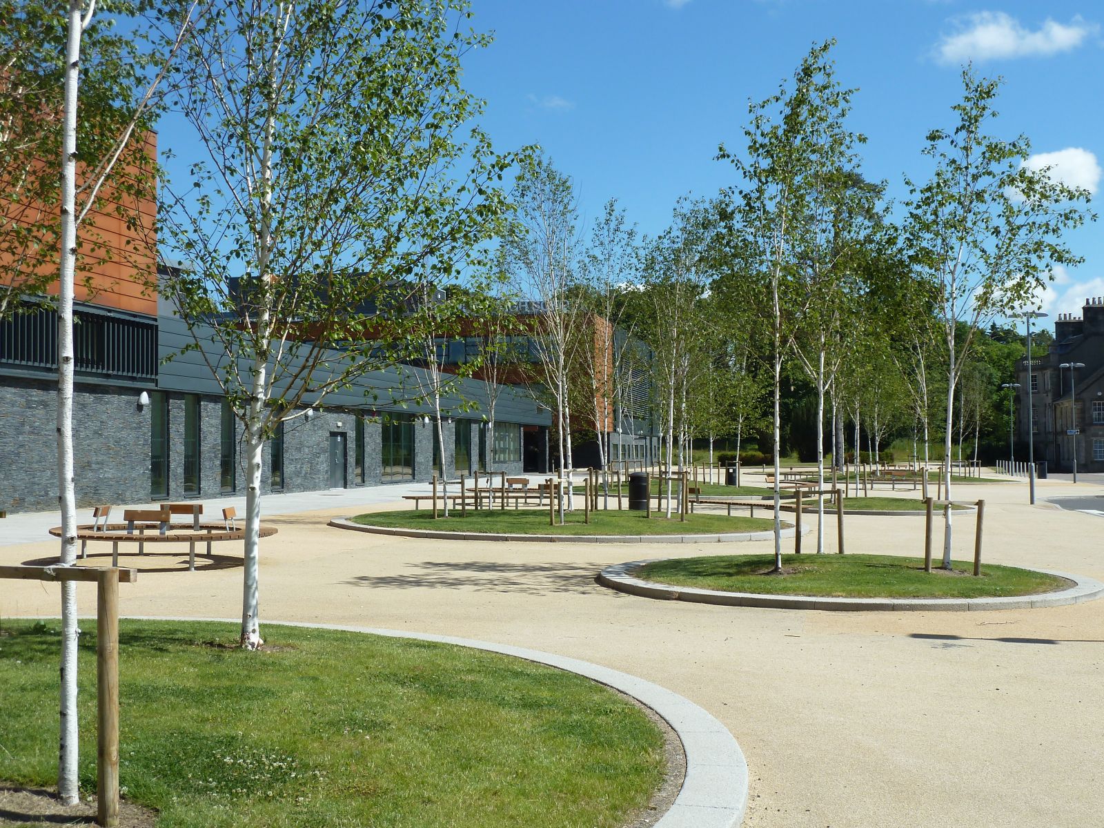 Hirst Landscape Architects were part of BAM Construction’s Design and Build Team for this Scottish Futures Trust Pilot Project, an initiative intended to procure major infrastructural projects and new public buildings. The site included Capelrig House, an existing Grade “A” Listed Building and a large proportion of the original Estate Policy Woodland, which had to be incorporated within the scheme. The development includes community sport and leisure facilities and features an imposing public realm. Other facilities include a 400M synthetic running track and an outdoor dining gallery overlooking the all-weather sports pitches.