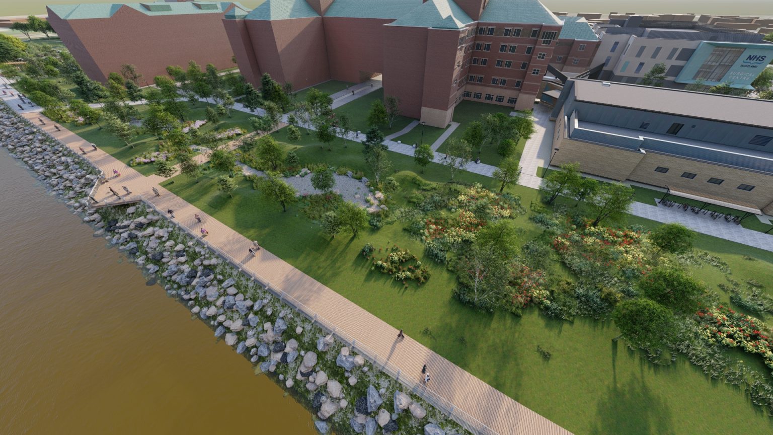 Hirst Landscape Architects were initially appointed to carry out a discrete piece of work to landscape the area within the immediate vicinity of the new Eye Clinic which was to be built to one side of the main entrance of the original hospital. We were subsequently retained to provide Landscape Architectural Services for the Surgical Unit which was to be built on the opposite side of the entrance. This provided us with the opportunity to totally reimagine the visitor experience by reconfiguring the approach and arrival providing, at the same time a refreshed brand for what was becoming a tired façade. Whilst these projects were being progressed, we were asked to undertake a masterplan review of the entire site looking in particular at car parking, circulation, recreational amenity, and biodiversity enhancement. A comprehensive strategy was prepared, and implementation is ongoing.