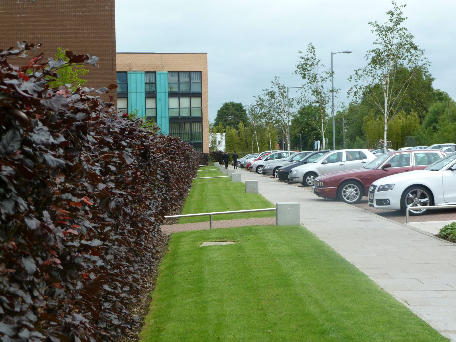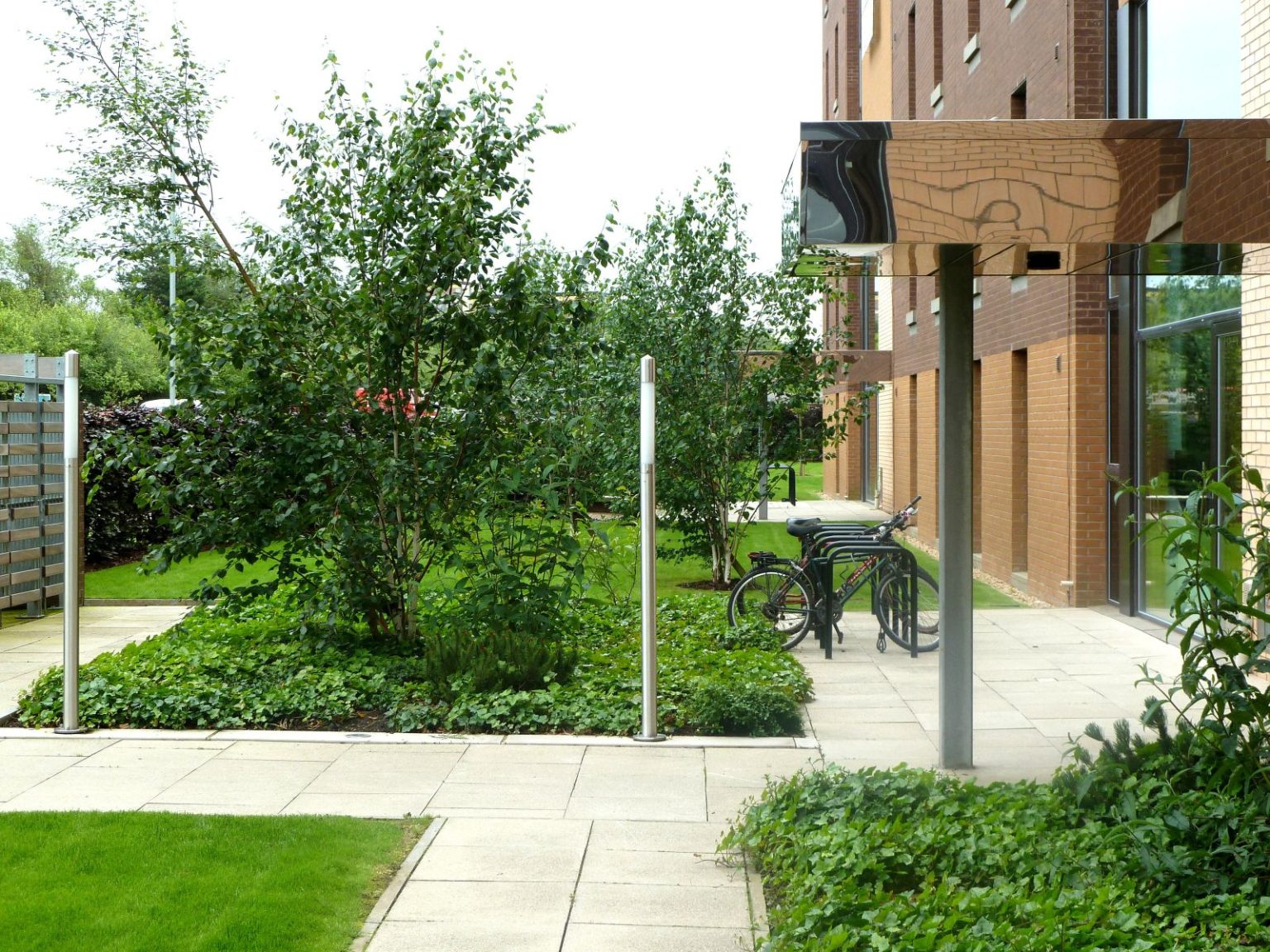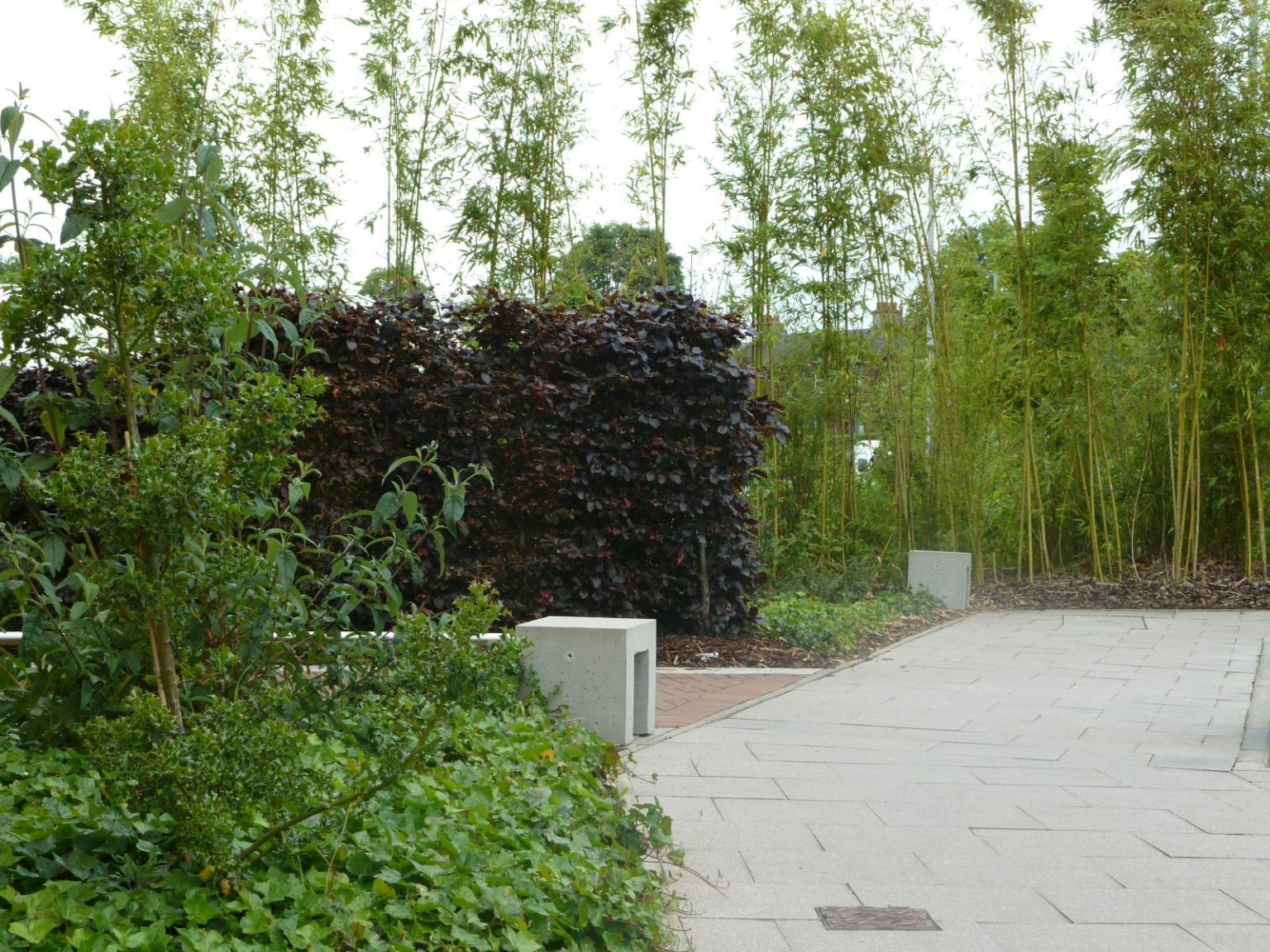 ZM Architecture’s layout provided a series of blocks set out in a stepped arrangement with the access road and car parking running alongside. The landscape solution utilised mature purple beech hedging to enclose and separate the garden areas for privacy at ground level whilst creating bold, unified public frontage. Simple ground cover planting with trees as focal points marked each entrance with bamboo planting used to provide privacy and screening to the edge of the rear ground floor garden areas.