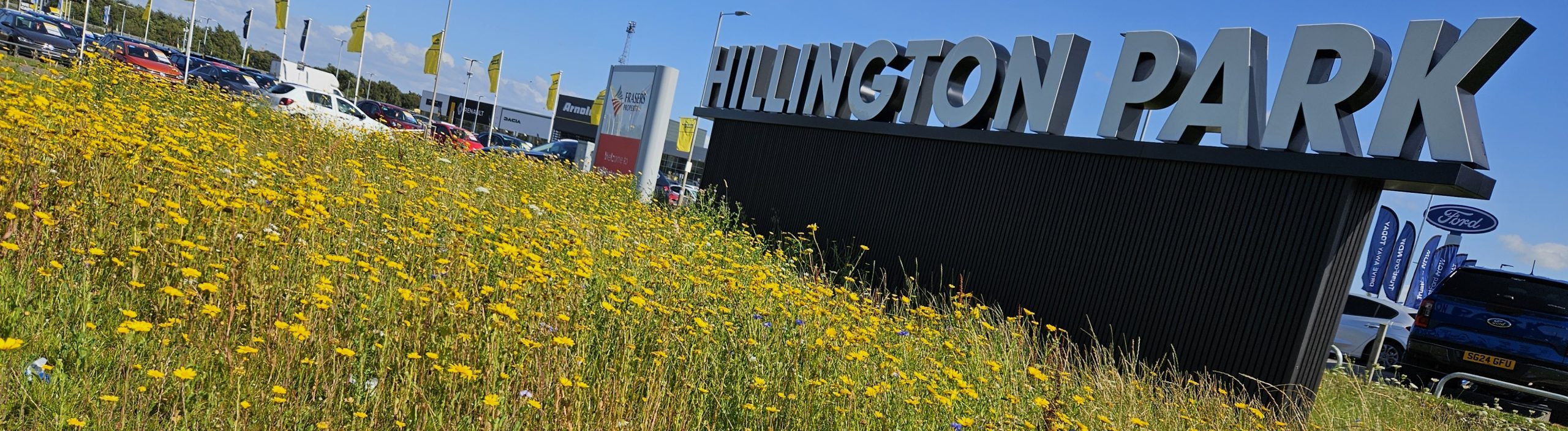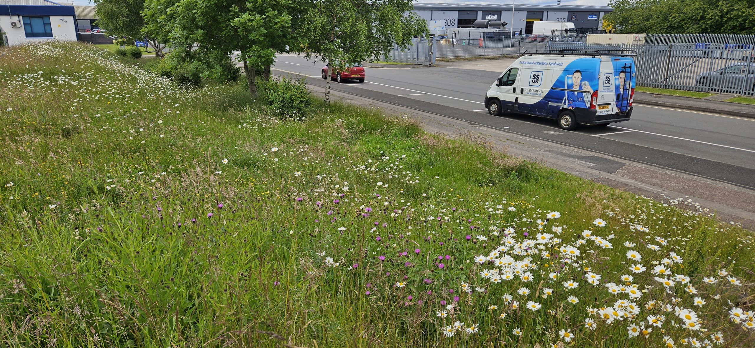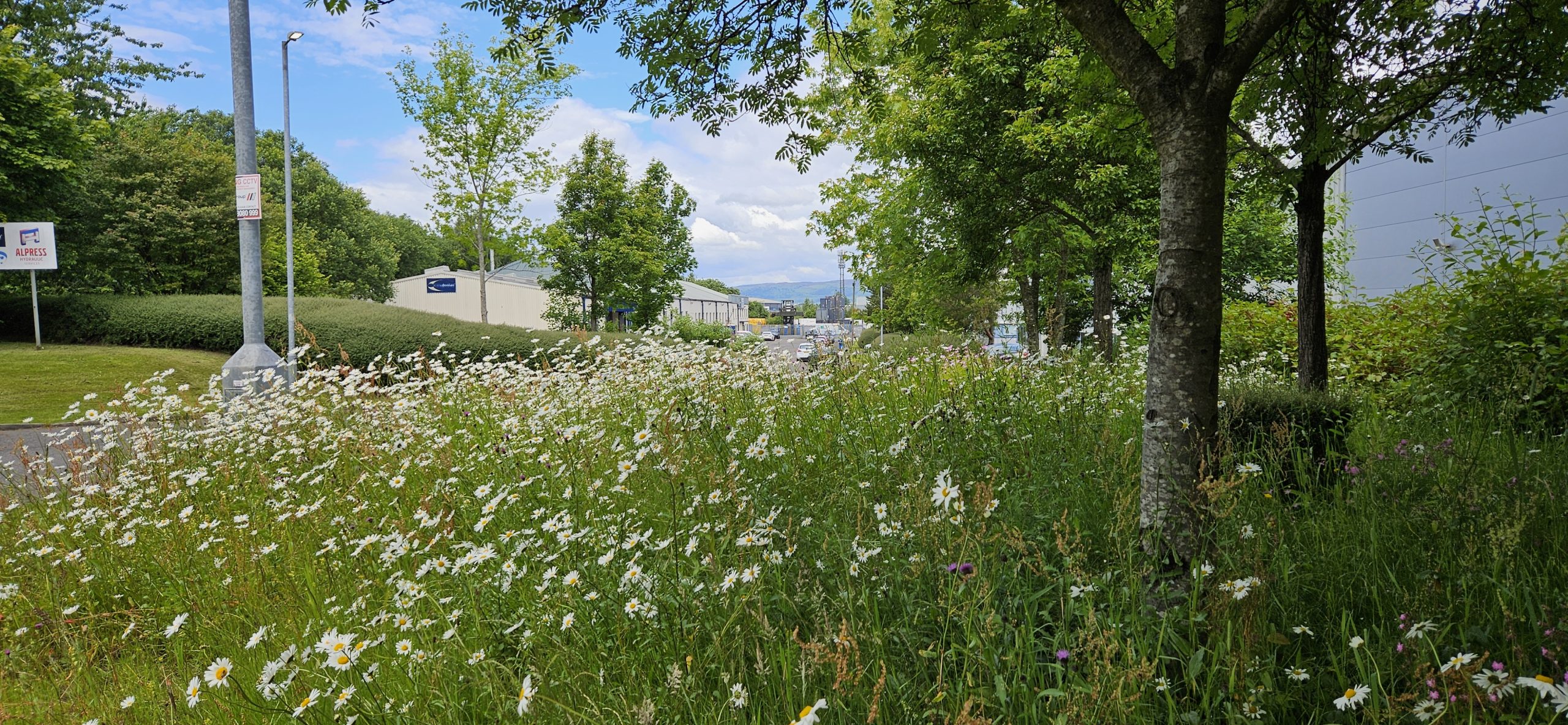 Hirst Landscape Architects had previously been involved with the development of Hillington Park for previous owners Caledonian Land and MEPC between 1991-2003, undertaking various landscape improvements and new build developments. We were reintroduced to the park by new owners FPUK and tasked initially with reviewing and developing a series of small-scale landscape improvements and interventions to refresh areas of tired planting. Subsequently, the nature of the interventions has developed towards more biodiverse landscapes on residual open plots, both as direct projects and as off-site ecological gain for recent developments.