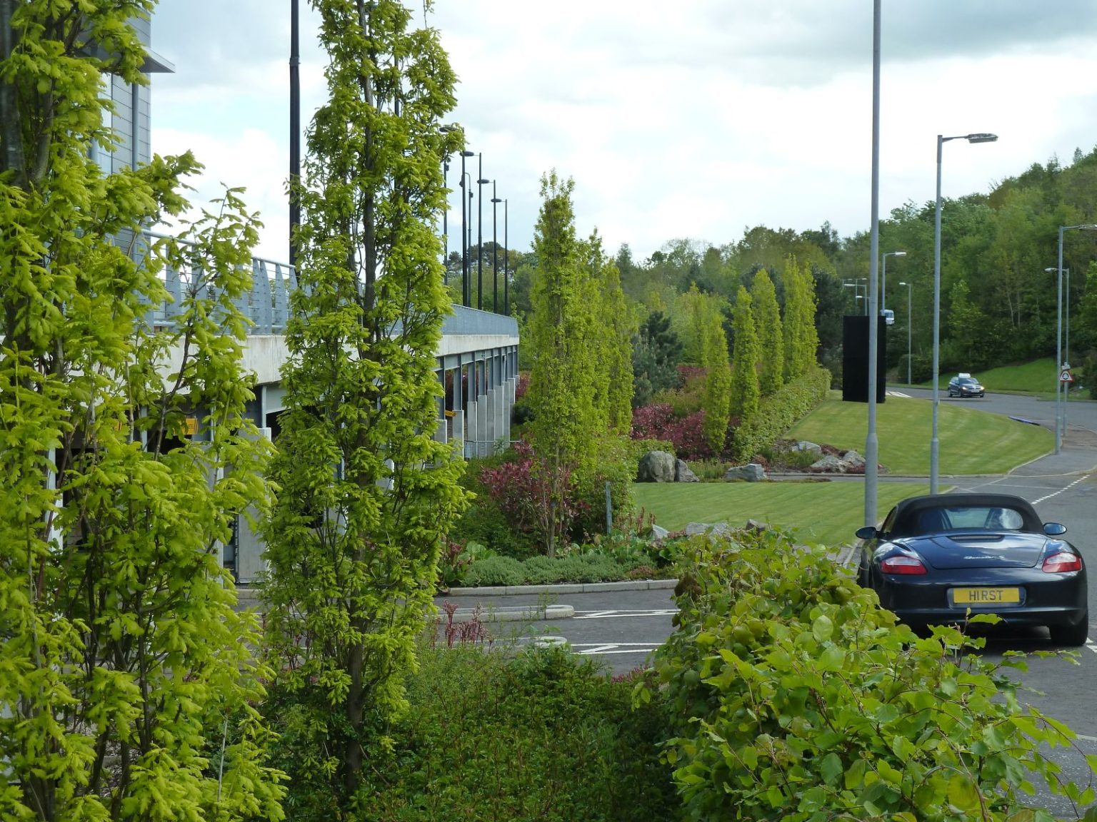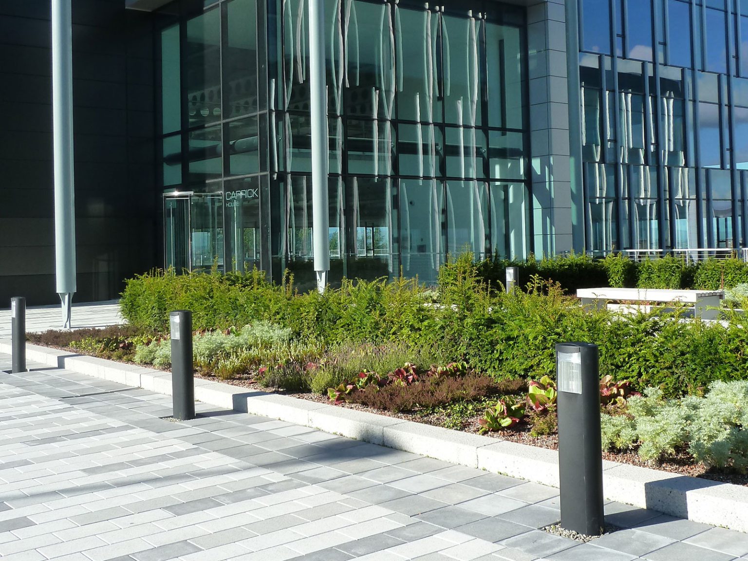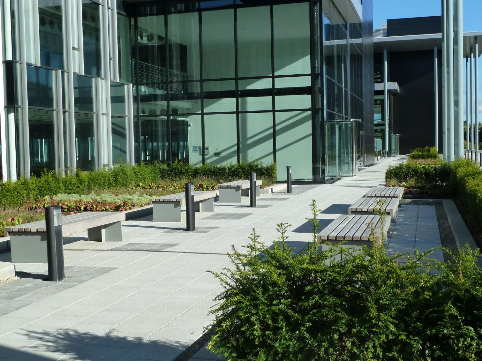 High quality planting and landform were utilised to screen exposed basement areas along the public elevations providing a high quality frontage and tying the building onto the wider business park landscape.