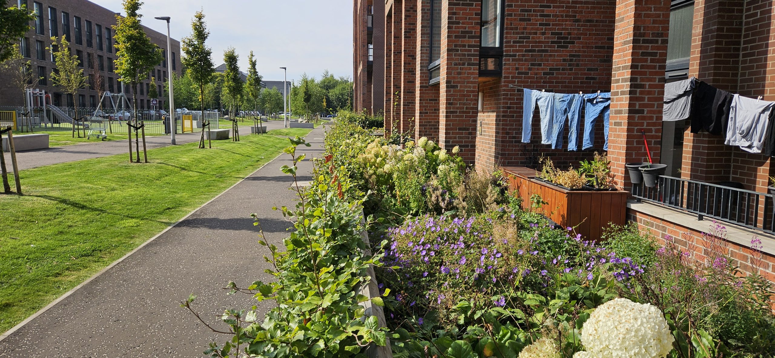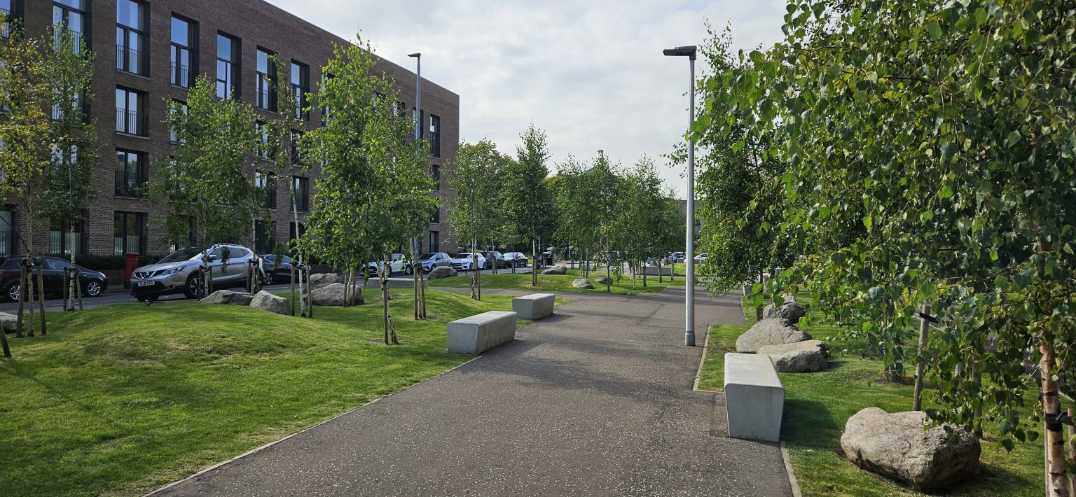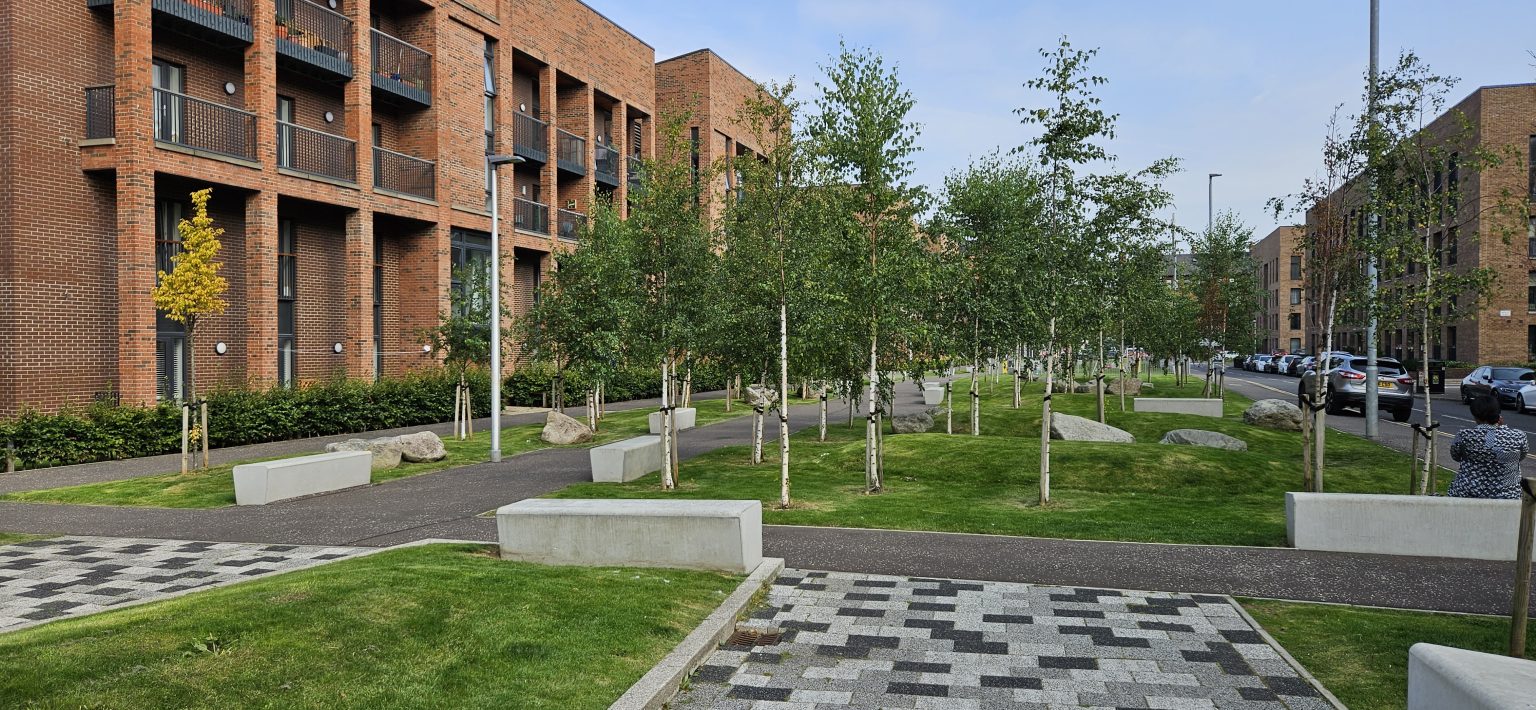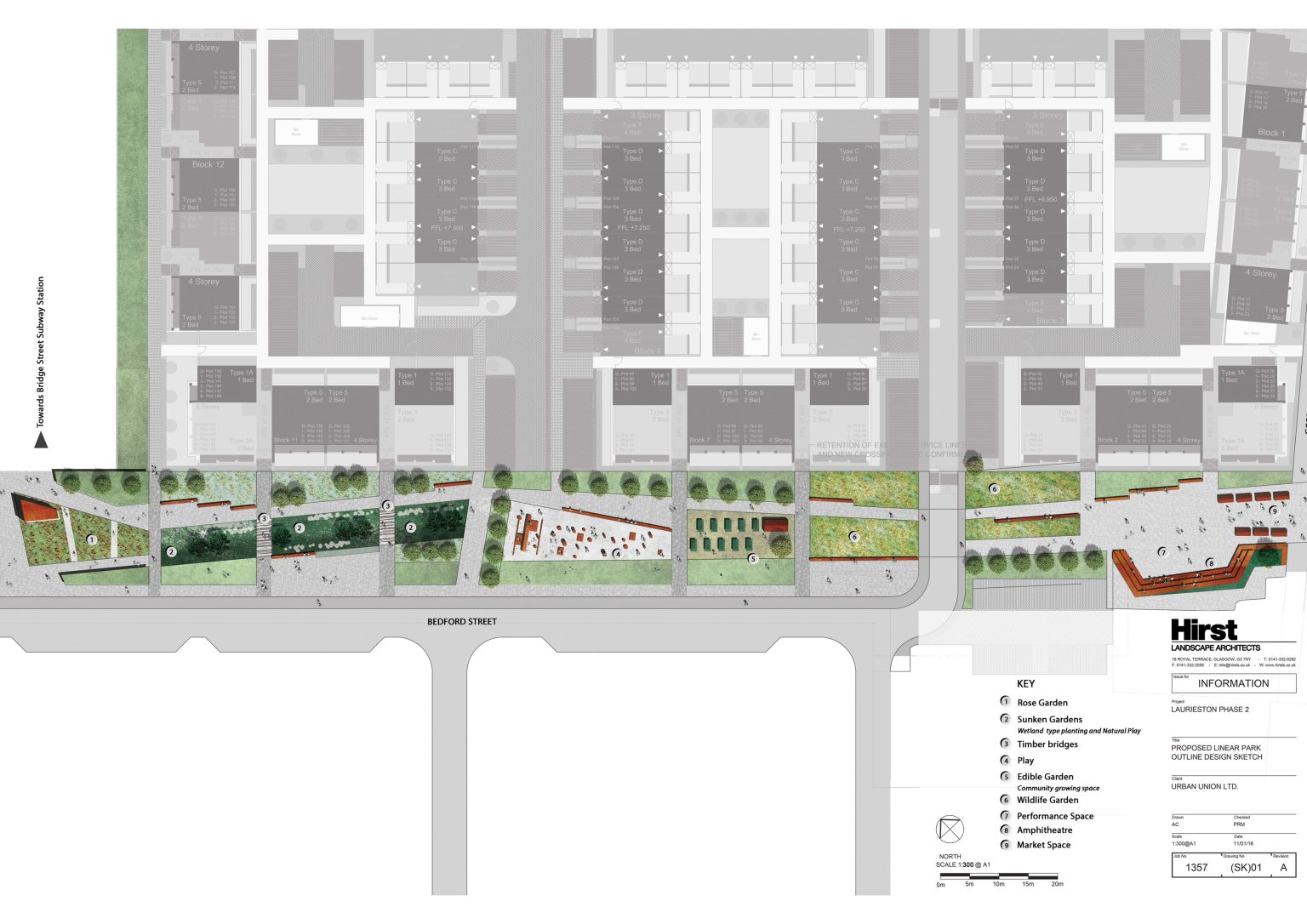 The second phase of a major £140m brownfield regeneration project located to the south of the river Clyde in Glasgow. Working as part of the design team with Urban Union’s development partner, McTaggart Construction and Architects, Anderson Bell Christie, Phase II featured the design and construction of 173 townhouses and apartments, together with associated open spaces and public realm. This phase of the project included the design and implementation of the first part of a new linear community park. The design was developed through extensive consultation and required the resolution of future ownership and maintenance arrangements, as well as the various features to be incorporated into the design. Close liaison with GCC Land Services ultimately guided details of the design to enable future adoption of the new park beyond the initial five-year establishment maintenance period.