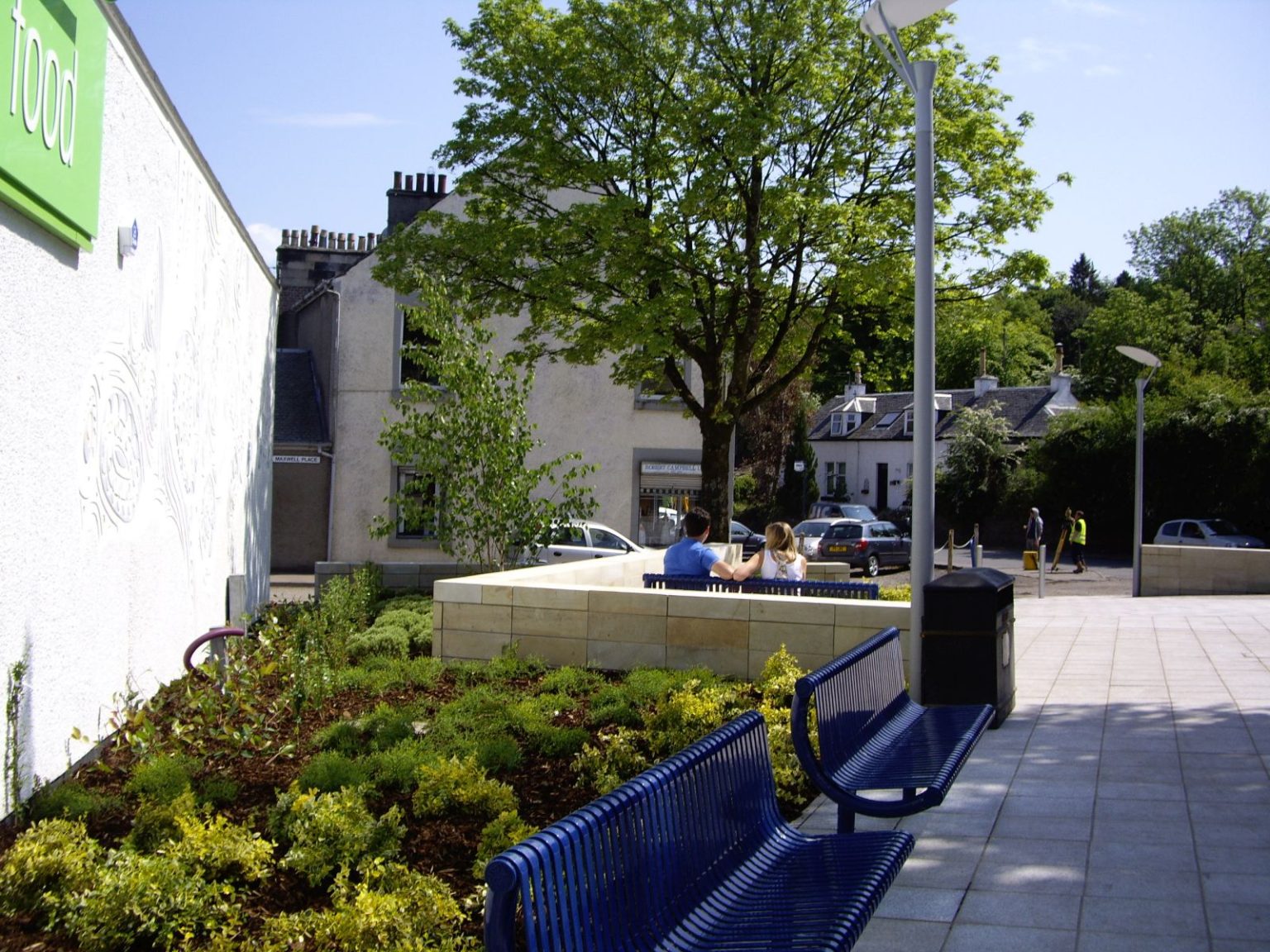 The revitalisation of the Public Realm and streetscape for two established but tired public spaces within the centre of each village. The solution for Bridge of Weir included a series of low, sandstone clad walls to provide enclosure and define seating areas. The public realm was extended by removing a large, unnecessary bus bay. The design solutions also addressed and resolved the problem of composite falls across the paving which were subtly re-configured to be DDA compliant.